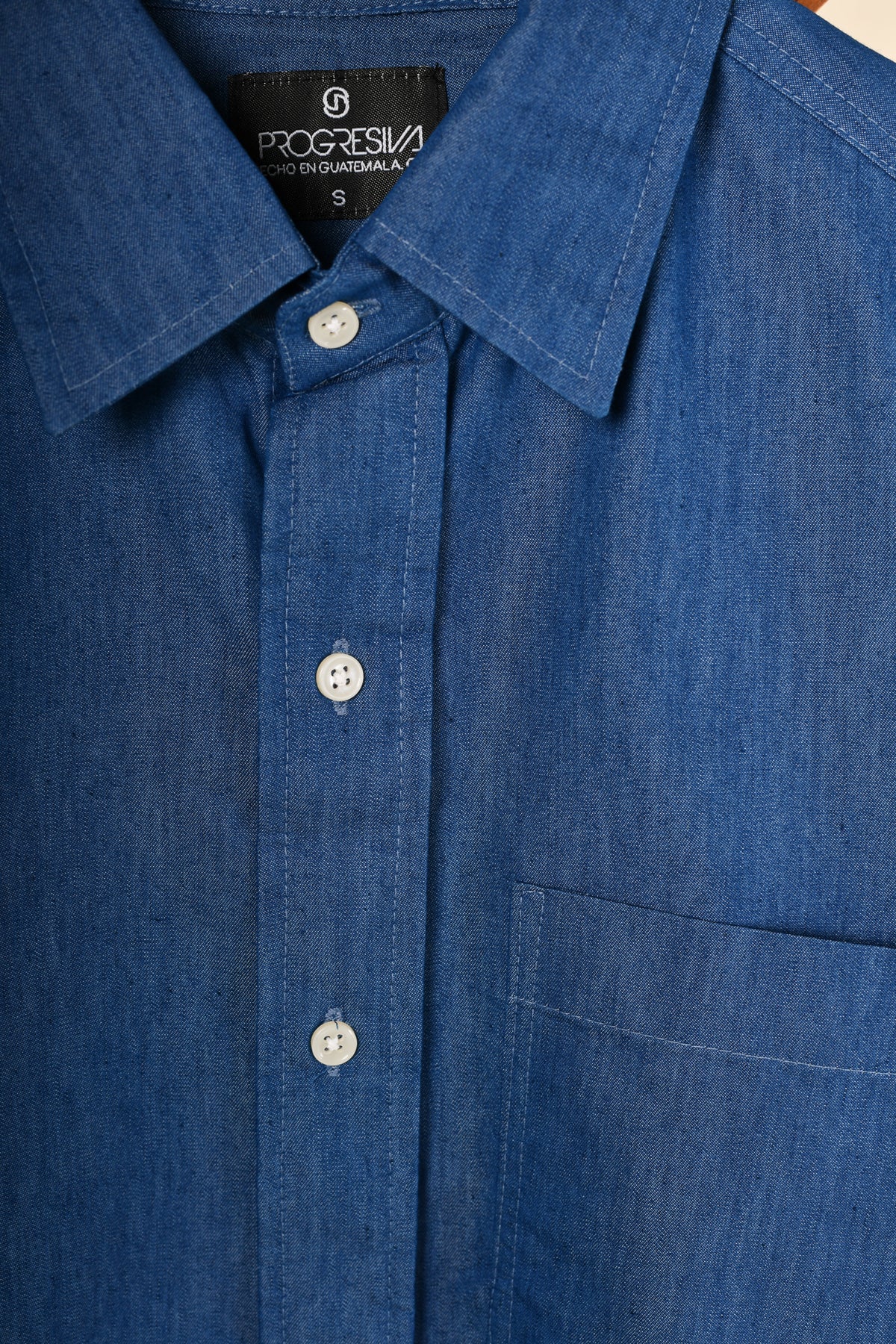 Descubre la comodidad y durabilidad de esta camisa de lona en color azul, confeccionada 100% en algodón. Su diseño de manga larga incluye dos prácticos bolsillos en el pecho, ideales para llevar tus objetos esenciales al alcance de la mano. Perfecta para uso diario, combina resistencia y estilo en una sola prenda.