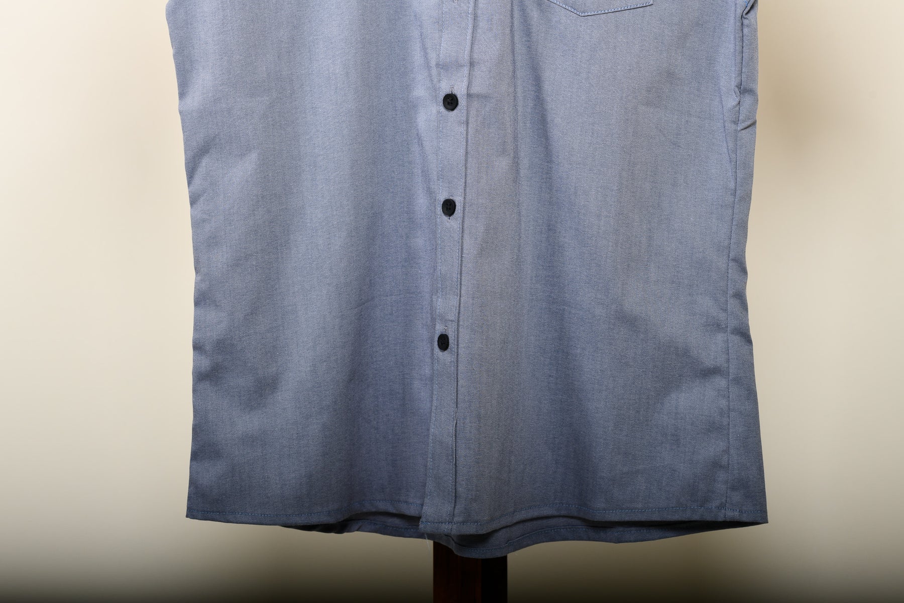 Camisa oxford manga corta cuello chino - azul grisáceo