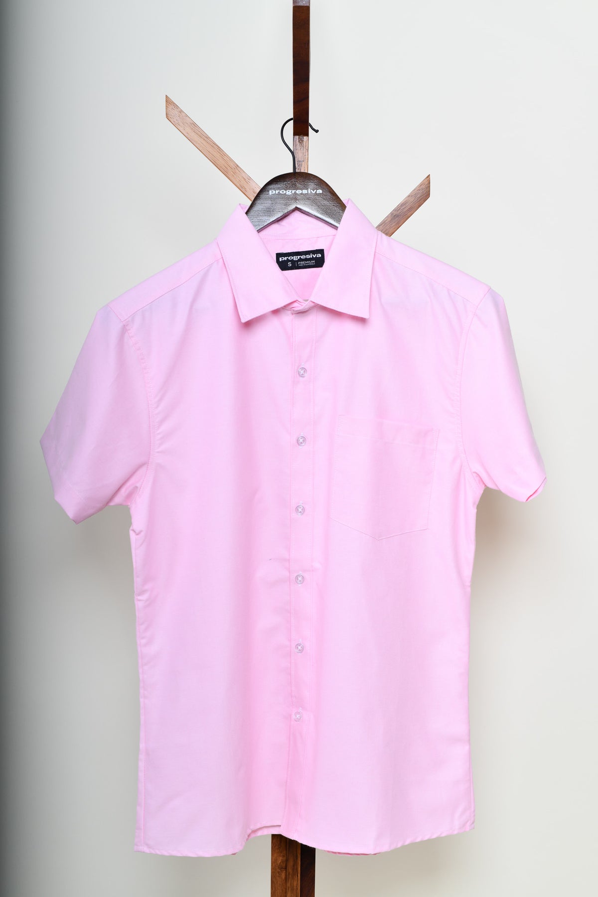 Camisa oxford manga corta cuello normal - rosa