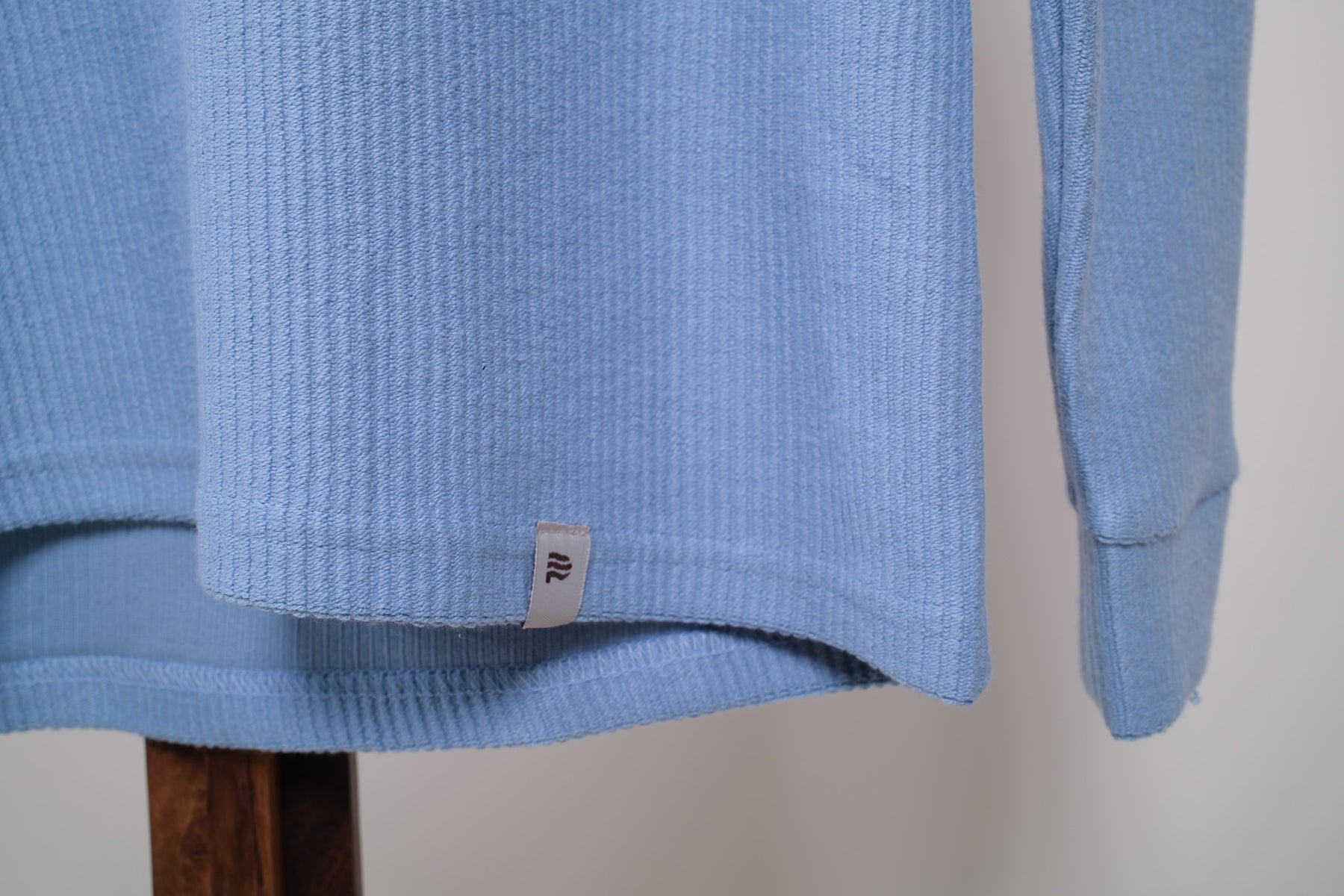 La Brisa destaca por su tono limpio y tacto suave. Su diseño de manga larga y cuello con líneas deportivas aporta un look relajado pero pulido. Ideal para transiciones entre estaciones o para elevar un outfit casual.