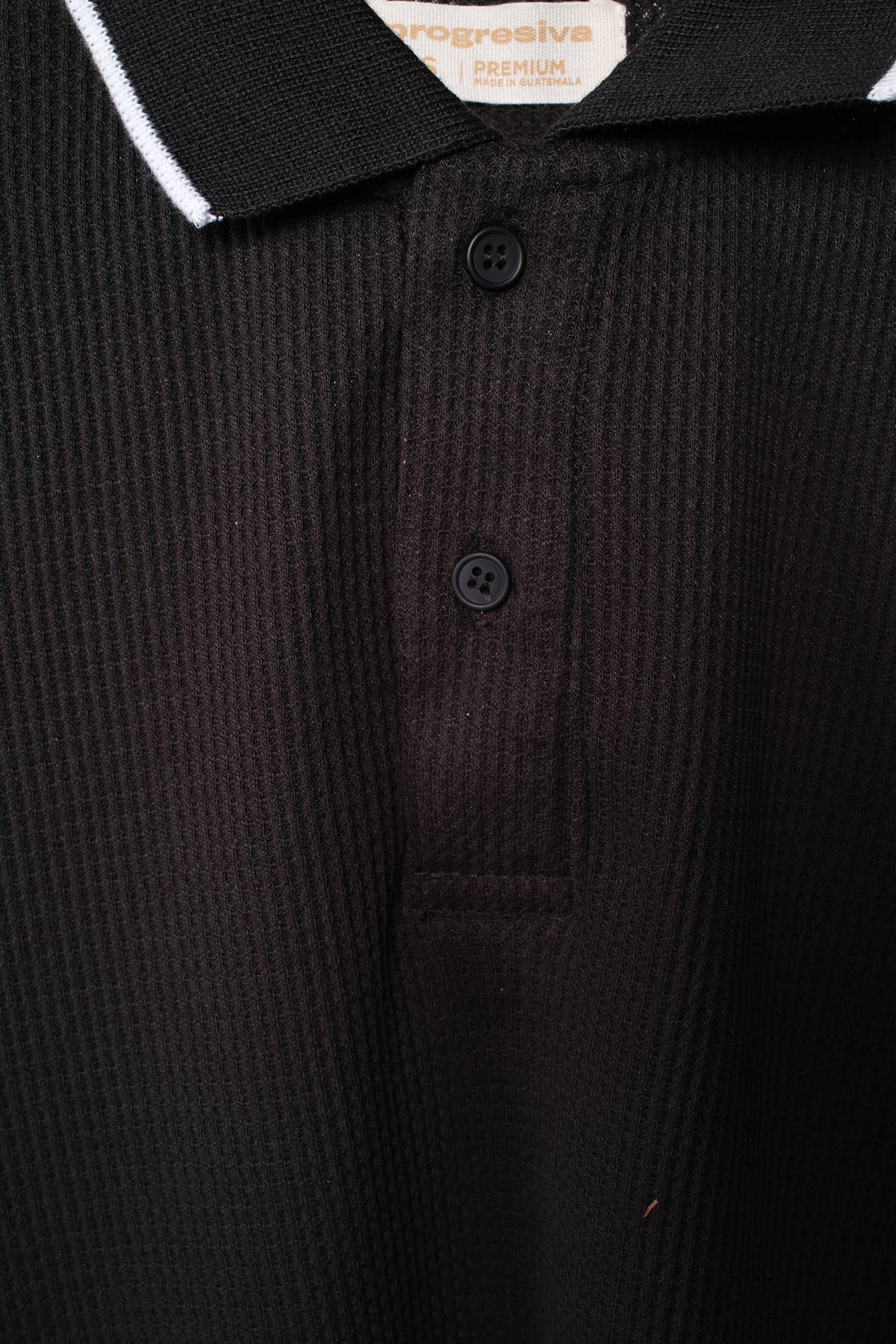 Playera Tipo Polo Tela Waffle - negro